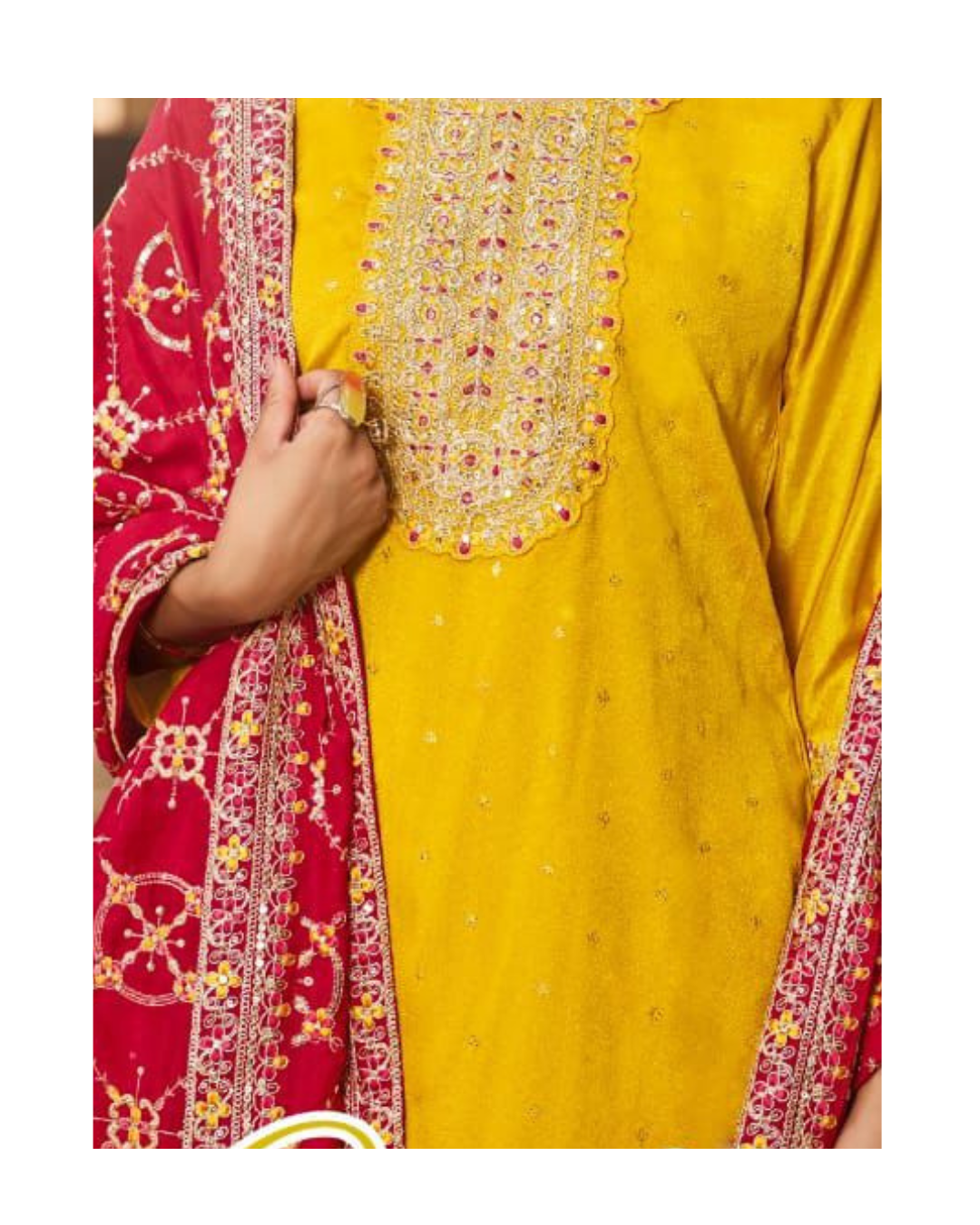 Beautifully adorned with intricate embroidery / embellishments