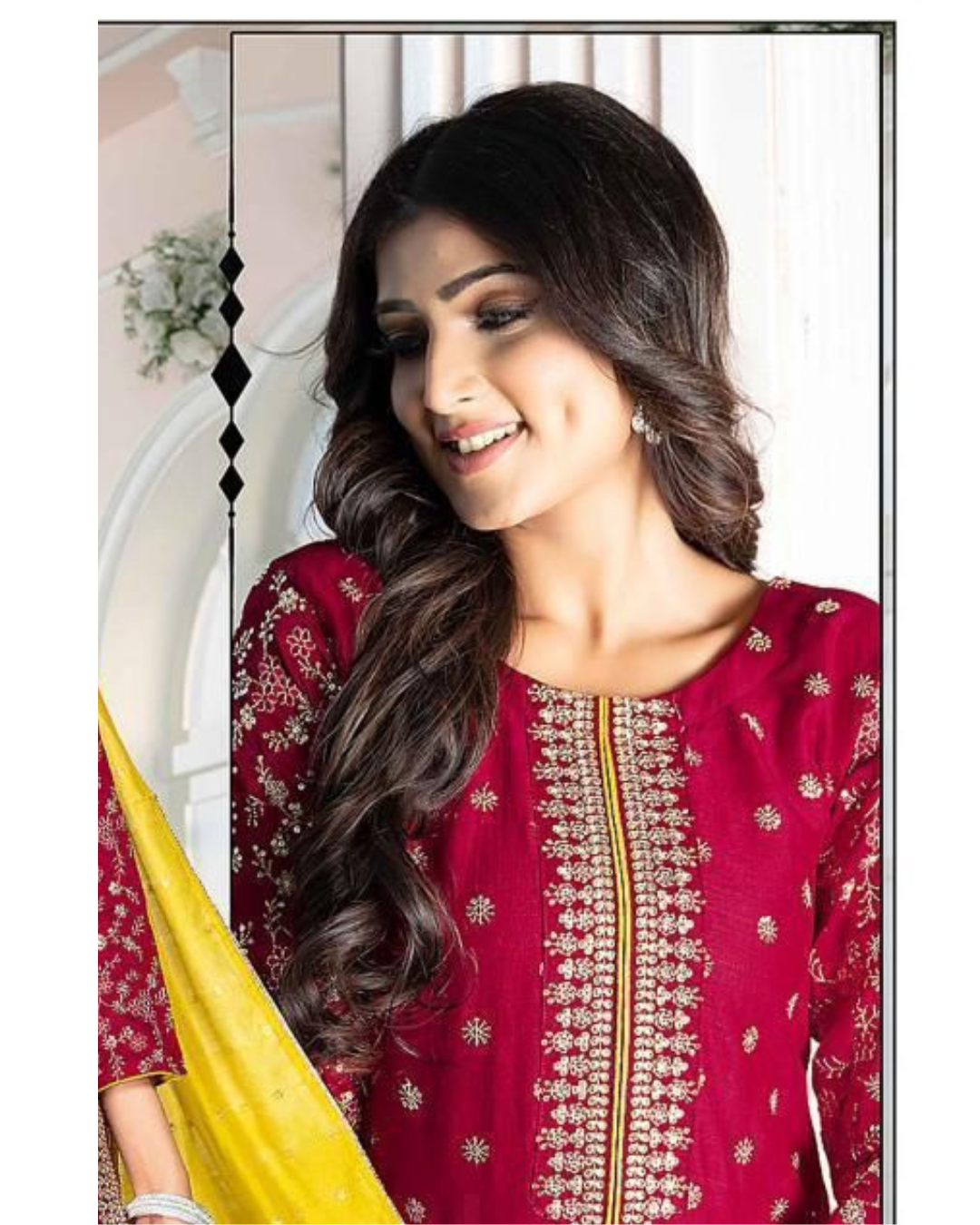 Rich maroon straight-cut kurta adorned with all-over golden butti work