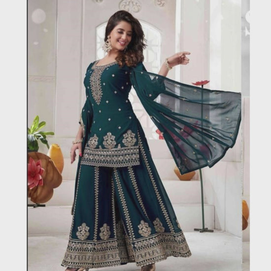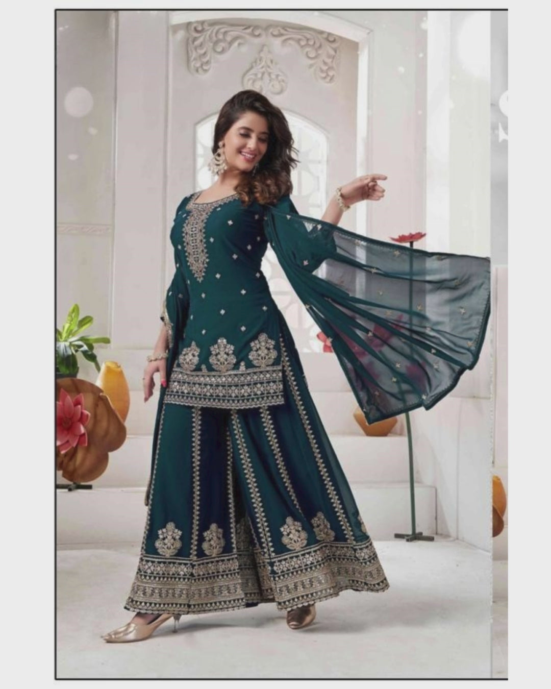 Elegant Teal Green Color set with intricate Golden Embroidery